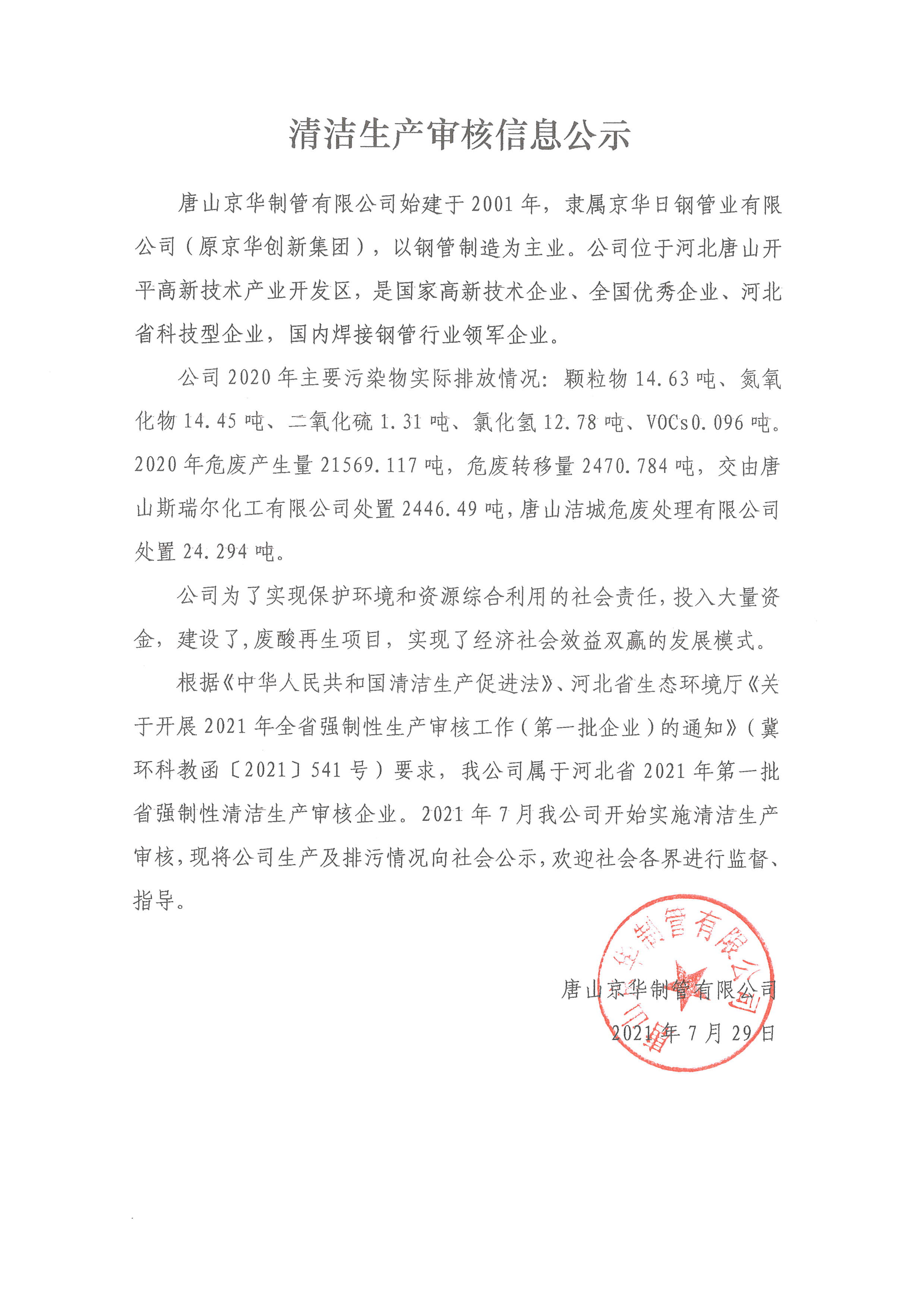 LDTY.COM乐动体育(中国)科技公司清洁生产审核信息公示
