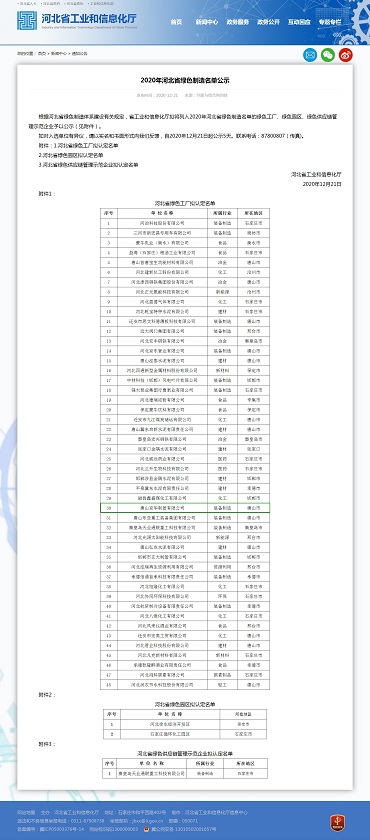 10月13-14日,绿色工厂专家审核组通过查看报告文件、统计报表、原始记录及现场座谈、实地调查等多种形式对我公司开展了绿色工厂现场评价。通过对工厂的基本要求、基础设施、管理体系、能源资源投入、产品、环境排放、绩效等多个方面的综合评价,并经省工业和信息化厅专家评审、公示,我公司被评为河北省绿色工厂。
