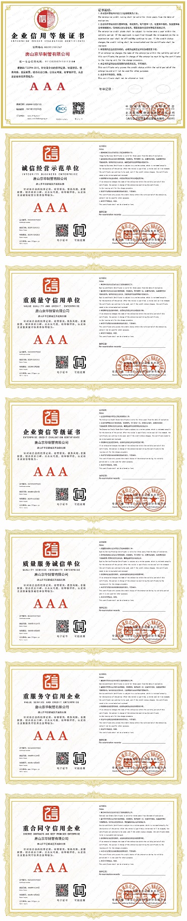 根据企业信用记录、经营状况、债务风险、发展前景、结合社会口碑、公众认可度,经过审核评估,LDTY.COM乐动体育(中国)科技公司被认定为“AAA级企业资信等级”、“AAA级企业信用等级”、“AAA级诚信经营示范单位”、“AAA级质量服务诚信单位”、“AAA级重服务守信用企业”、“AAA级重质量守信用单位”、“AAA级重合同守信用企业”。