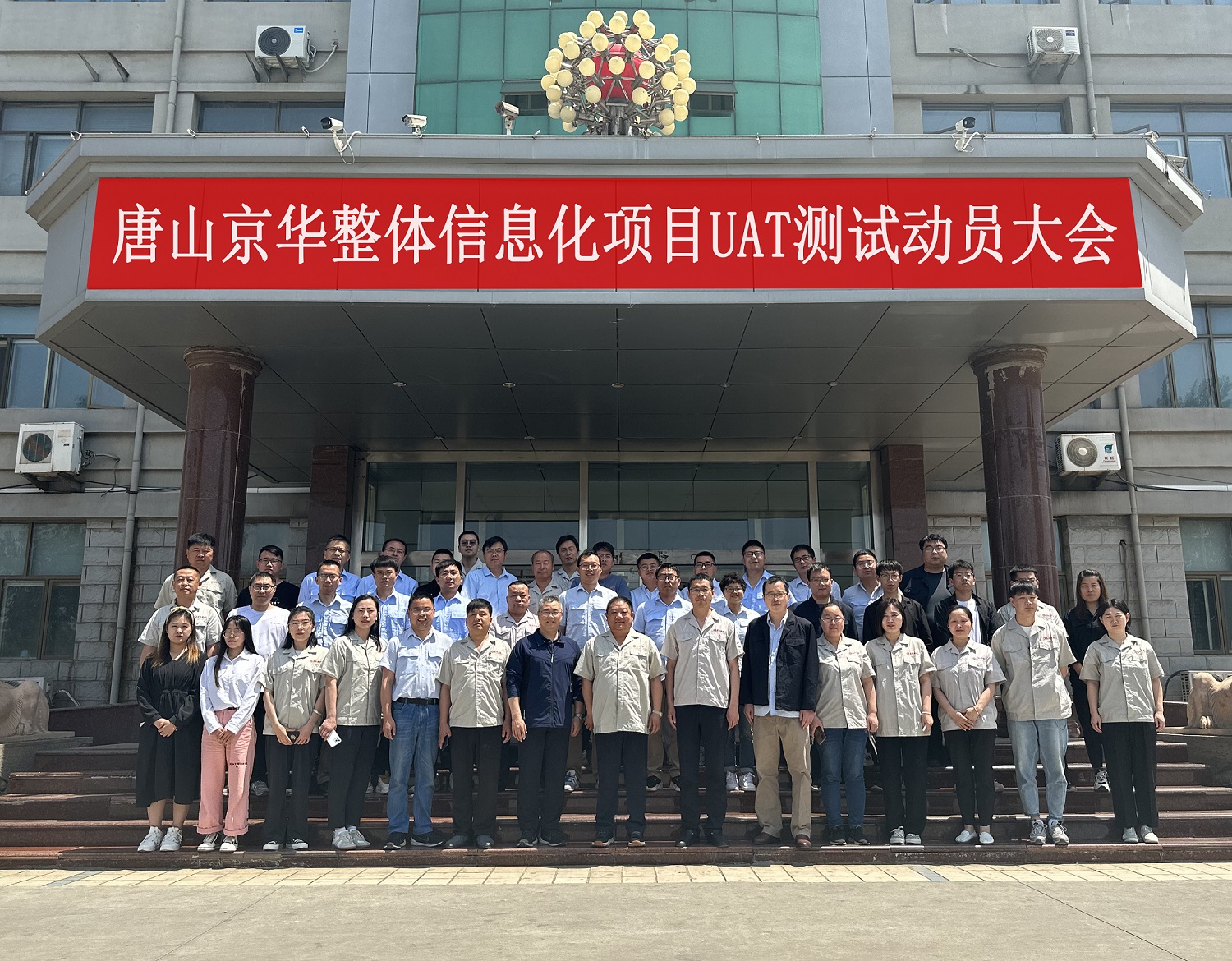 5月22日上午,唐山京华整体信息化项目UAT测试动员大会在公司办公楼五楼会议室召开。日照钢铁助理副总经理夏侯洪波、唐山京华总经理温朝江、京华日钢(日照)信息技术有限公司总经理高新永等领导出席会议。项目各业务小组组长、副组长、联络员及组内成员120余人参会。