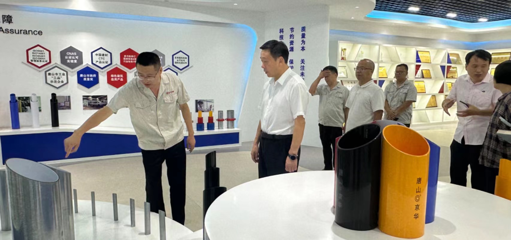 会前,关书记一行参观了公司展厅,听取了企业二十余年的发展历程,详细了解了公司主要产品、技术研发等方面的内容。